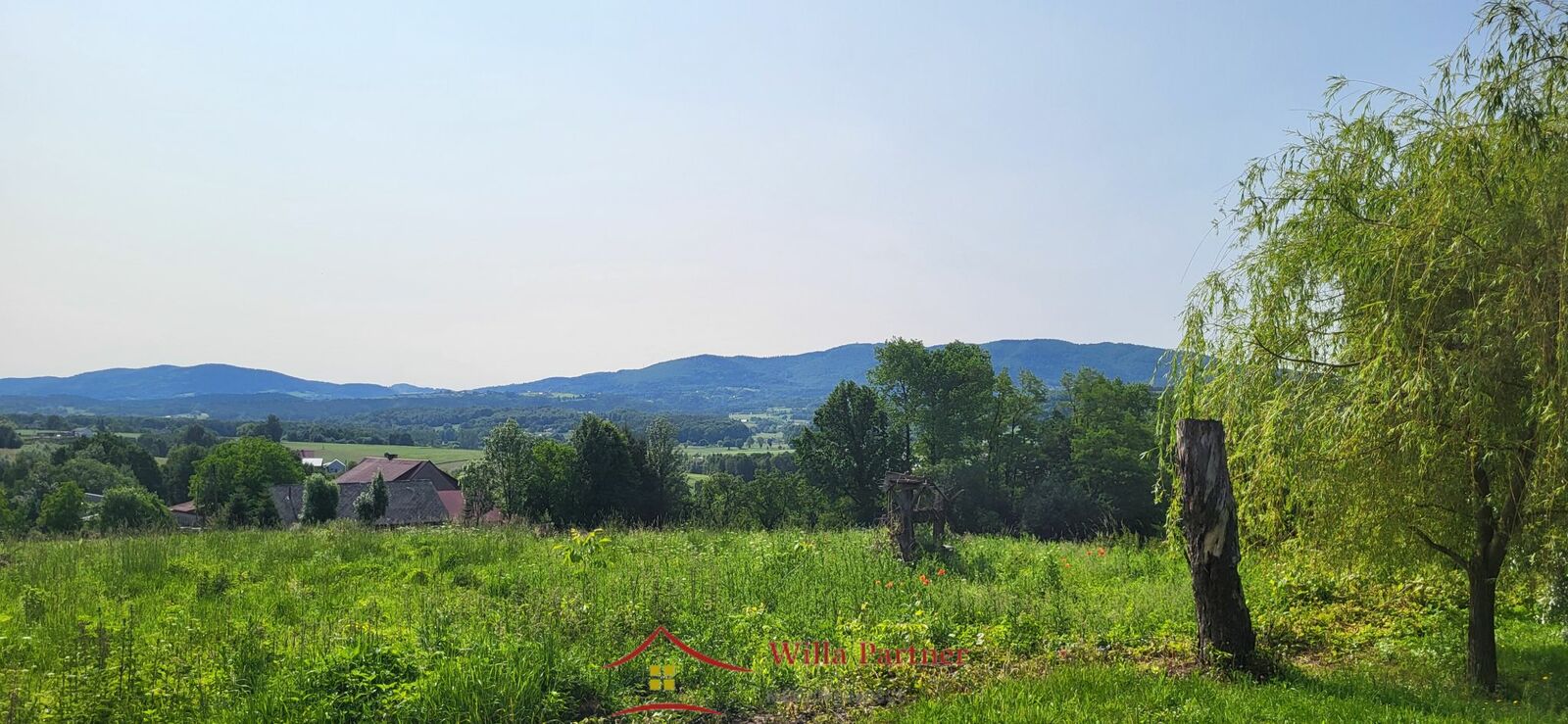 W dolnej części działka kończy się niewielkim laskiem i strumykiem.